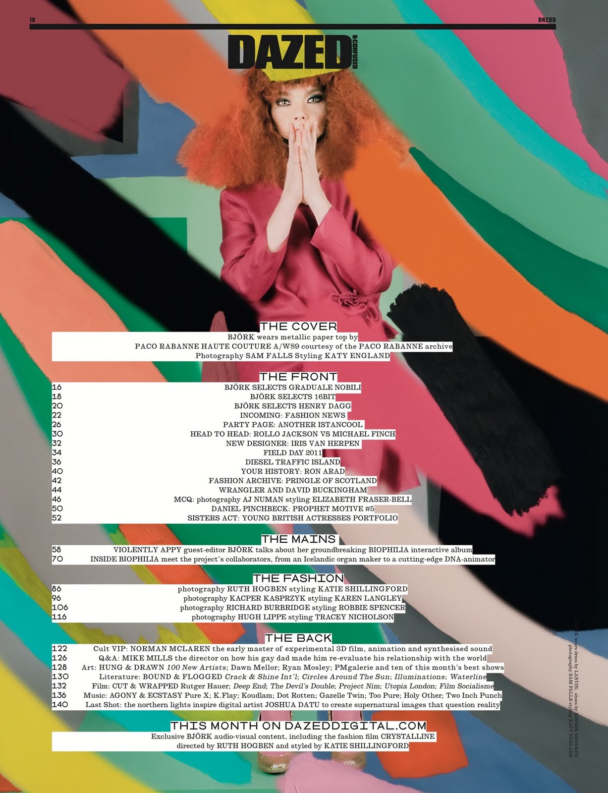 Björk en una doble cobertura de la revista Wired (UK version) en el número de agosto de 2011.